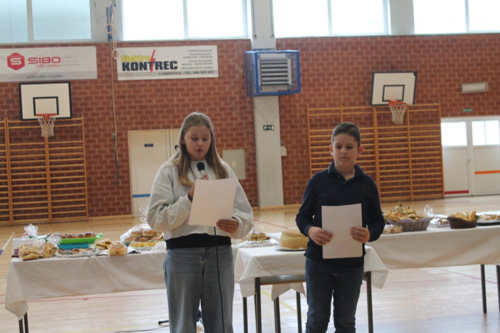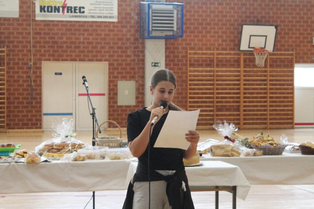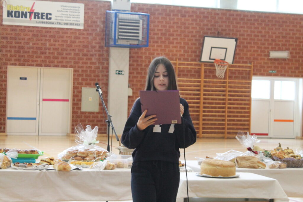 Nakon izvedbi recitacija, župnik Župe Majke Božje Snježne u Ljubešćici Stjepan Makar obavio je blagoslov kruha i ostalih pekarsko-slastičarskih proizvoda koje su s učenicima pripremili njihovi roditelji.