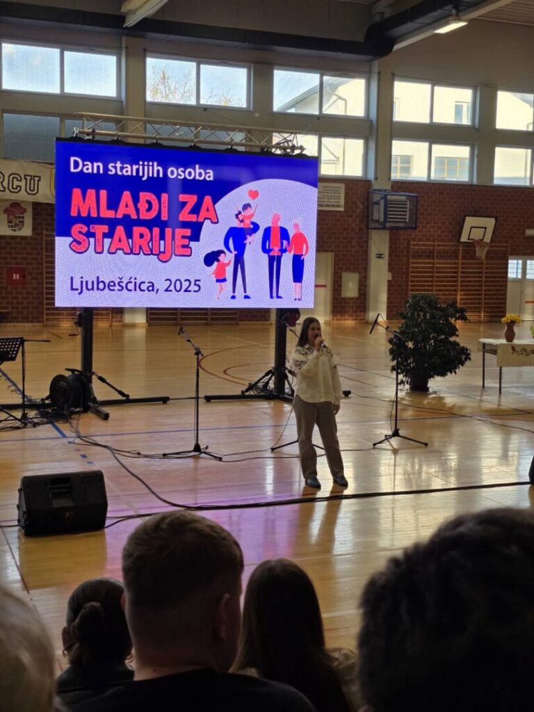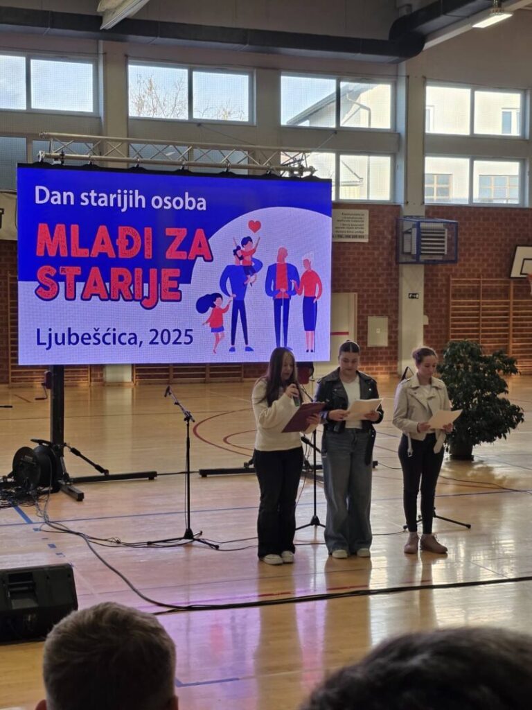 Tradicionalno deveti puta, u petak 10. listopada 2025. godine održan je prigodni program „Mlađi za starije“ koji se svake godine održava povodom Međunarodnog dana starijih osoba. U prigodni program, i ove godine, bile su uključene gotovo sve institucije s područja Općine Ljubešćica, a program su vodile osmašice Tara Petriček, Kristina Đurđević i Karla Šimec. Na samom početku brojne gledatelje pozdravio je domaći ljubeški „Bajs band“ te Veronika Bešenić koja je izvela pjesmu „Volim svoju baku“. Slijedile su čestitke koje je povodom Međunarodnog dana starijih osoba uputio načelnik Općine Ljubešćica Nenad Horvatić te predsjednica Udruge umirovljenika Varaždinske županije gospođa Jadranka Bahlen. Gabrijel Gotić izveo je monolog „Zimske radosti“ dok su Vita i Petar Puškadija otpjevali pjesme “Krist na žalu“ i „Danas smo sretni“. Dječica iz Dječjeg vrtića „Leptirić“ otpjevala su pjesmu „Baka i djed – moj dar“ te izrekli stihove pjesme „Baka i ja“. Tijekom programa nastupala su i dva pjevačka zbora, zbor Udruge umirovljenika i starijih osoba Petrijanec te zbor Udruge umirovljenika i starijih osoba Ljubešćica. Na kraju programa sve nazočne pozdravio je ravnatelj OŠ Ljubešćica Ivica Rojc te predsjednica Udruge umirovljenika i starijih osoba Ljubešćica Božica Mikulčić. Nakon programa bio je prokazan dokumentarni film „Babičini recepti“ koji je snimljen u Ljubešćici. Koordinatorica programa bila je učiteljica Sanja Horžić.