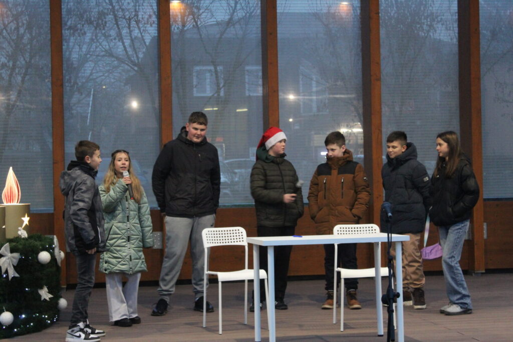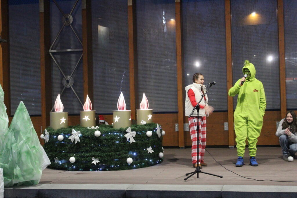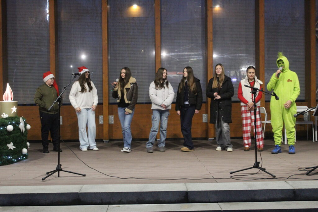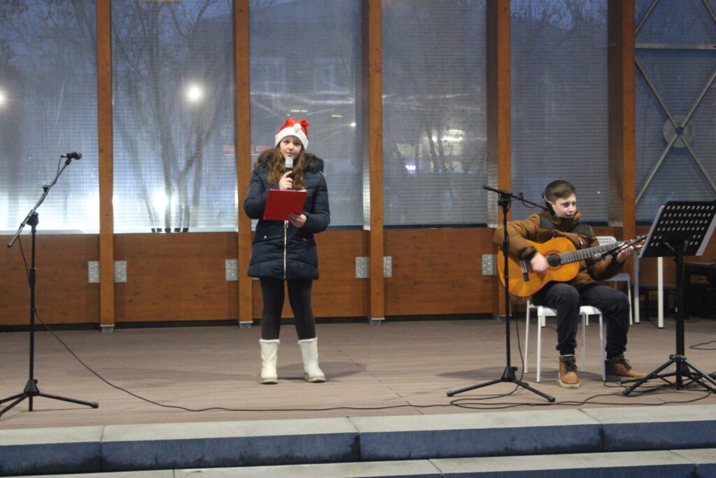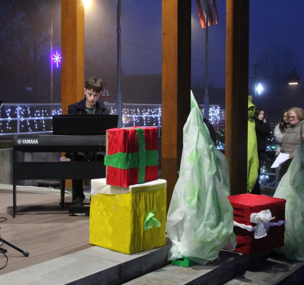 Program je nastavljen skupinom Leptirići koji su otplesali „Ledenu čaroliju“, izveli pjesmicu „Baka zima“ i recitaciju „Nemoj nikom reći“. Polaznici Produženog boravka koje je uvježbala učiteljica Danijela Horvatić s publikom su podijelili „Božićnu čestitku“ u izvedbi Eme Grljač i Luke Novaka, a „Badnju večer“ Felicita Horvatić, Dea Španić, Kiara Sakač i Elena Sakač dok su „Zvjezdane razgovore“ izvele Mia i Nika Mikulčić. Učenici trećeg razreda pod vodstvom učiteljice Mihaele Novak otplesali su prigodnu božićnu koreografiju. Uslijedila je dramsko – scenska igra „Božićno okupljanje“ koju su uprizorili učenici 6. razreda pod vodstvom učiteljice Sanje Horžić: Petar Puškadija, Hana Dvorski, Gabrijel Gotić, Tia Bogdan, Ivan Futač, Janko Mikulčić i Jakov Novosel. Članovi Pjevačkoga zbora OŠ Ljubešćica pod vodstvom učiteljice Bernardice Bačan utpjevali su skladbe: „Snjegović Snješko“ i „Mehki snežek“. Pjesmu „Volim Božić“ izrekla je Danijela Šafran, a „Dobrodošlicu Božiću“ Karla Šimec i Kristina Đurđević. O ponoćnim zvonima pjevali su Vita i Petar Puškadija. Može li Grinch postati dobar, moglo se doznati iz istoimene dramsko – scenske igre koju su izveli članovi Dramske družine 7. razreda (Martin Mrvčić, Lara Španić, Elena Tomiek, Leona Gotić, Lara Kropek, Patrik Slatina, Mia Barbara Funtak i Vanesa Sokač), a uvježbala ih je učiteljica Sanja Horžić. Na kraju je uslijedilo veliko iznenađenje. Prvi puta na Ljubeškom trgu svirao je osmaš Marko Hosni koji ove godine završava osnovnu glazbenu školu u Novom Marofu. Marko je odsvirao skladbu „Let it Snow“ Deana Martina. U ime Općine Ljubešćica nazočnima se obratila predsjednica Općinskog vijeća Maja Bahunek zaželjevši svima nazočnima blagoslovljene nadolazeće blagdane. Voditeljice programa bile su Leona Gotić i Lucija Dvorski, a tehnička potpora Mihael Španić.