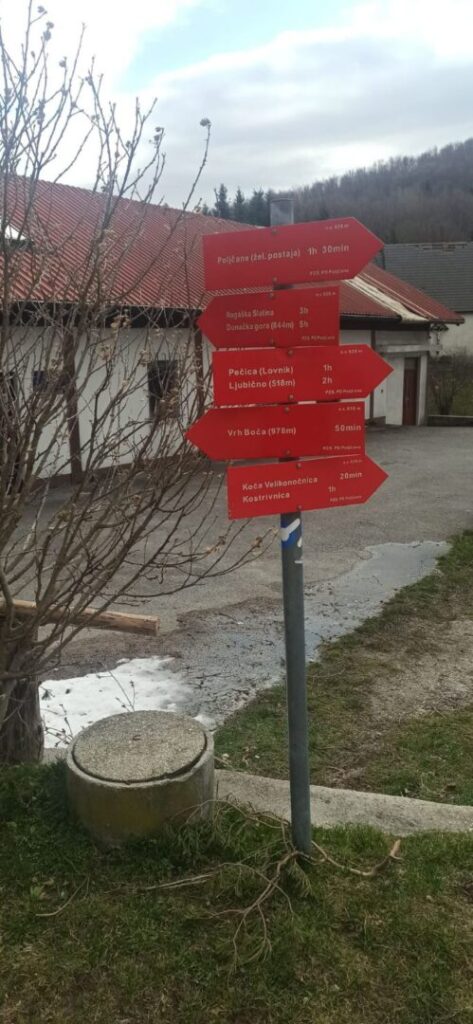 Krenuli smo u 7:15 h iz Ljubešćice prema Varaždinu i slovenskoj granici. Oko 9.30 h stigli smo u Poljice iz kojih smo planinarskom šumskom stazom krenuli prema Planinarskom domu Boč (658 m). Uspon do doma trajao je oko sat vremena.