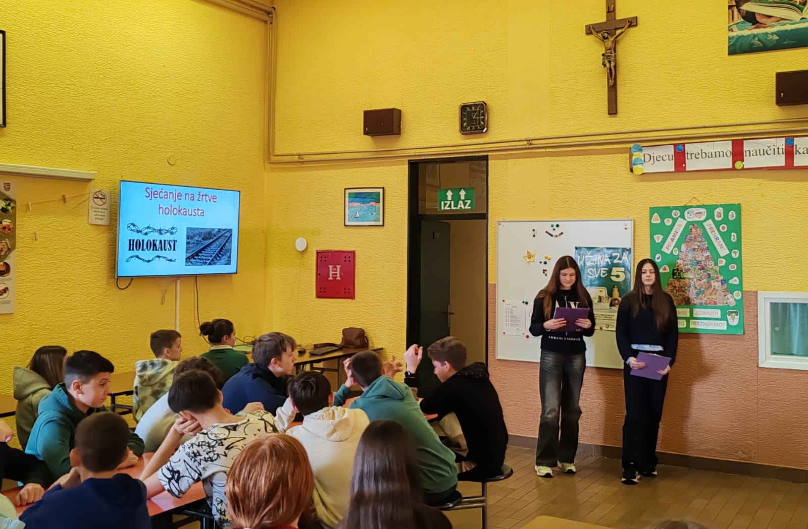 Prigodna izlaganja imale su učiteljice Andreja Vuk Šarc i učiteljica Jasna Šprem Gušić, a učenica Karla Šimec prezentirala je o Ani Frank i njezinom stradanju u holokaustu.